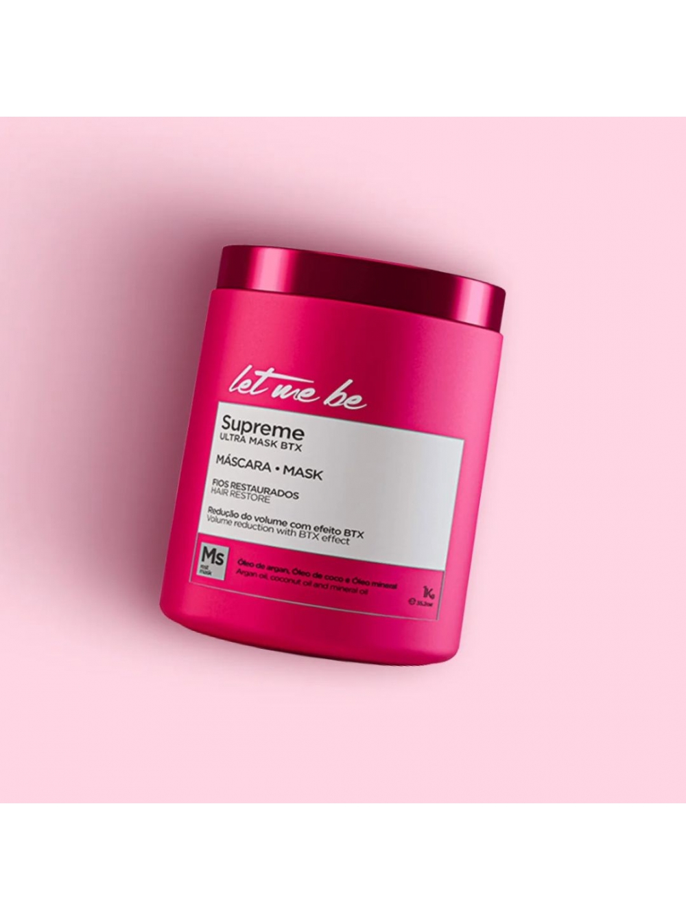 Ботокс для волосся Supreme Ultra Mask від Let me be (країна-виробник – Бразилія) дозволить випрямити та відновити тьмяні, ламкі та кучеряві пасма, як у салоні, так і в домашніх умовах. Склад засобу насичений органічними кислотами та натуральними маслами, які усунуть сухість локонів, наситять та ущільнять волосся після багаторазових фарбувань та термообробок. Ефект блискучих та живих локонів триватиме від 2-х до 3-х місяців.