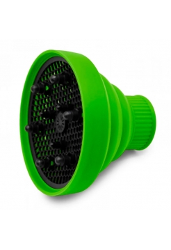 Дифузор для фену складаний – інструмент для укладання тонких, позбавлених об'єму локонів, створення чітких завитків. Укласти волосся цією насадкою можна двома способами: перший – пропрацювати коріння, м'яко піднімаючи та фіксуючи пасма гарячим повітрям, при цьому довжину висушити без насадки для локонів; другий – окремі пасма підхопити дифузором у самих кінчиків і плавним рухом підняти до голови.