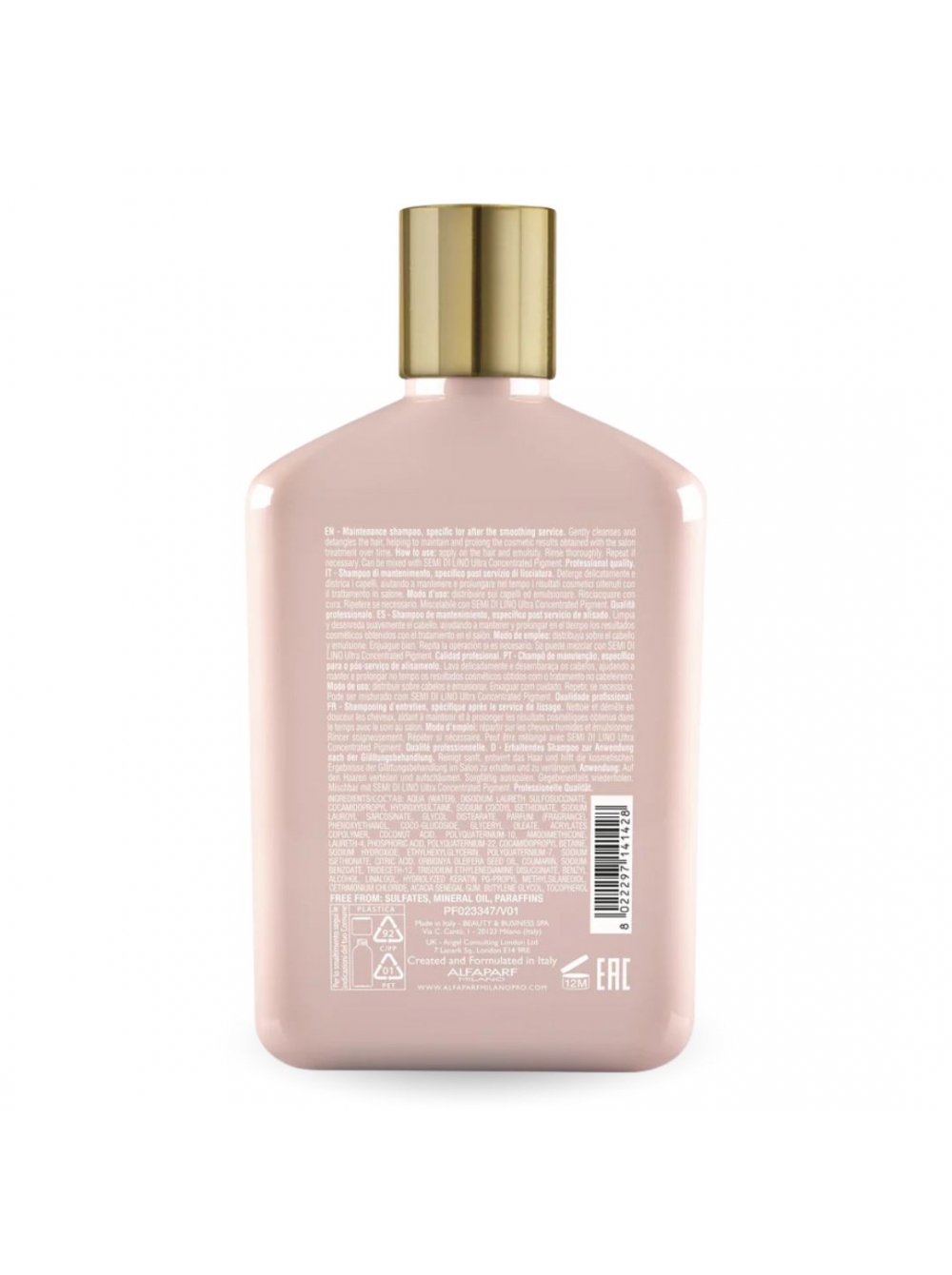Кератиновий безсульфатний шампунь Alfaparf Milano Lisse Design Keratin Therapy Shampoo створений для догляду за волоссям після кератинового вирівнювання та для щоденного підтримання гладкості й блиску. Формула м’яко очищає волосся, не вимиваючи кератин і не обтяжуючи його структуру.