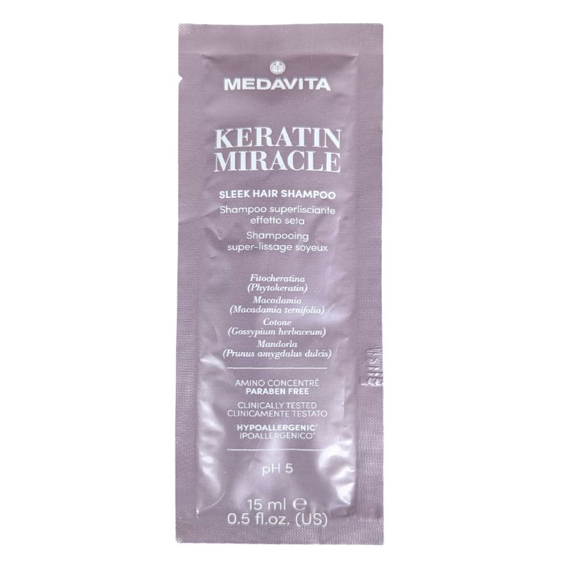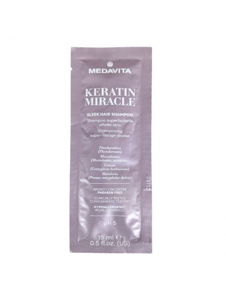 Розгладжуючий шампунь Medavita Keratin Miracle Sleek Shampoo з ефектом шовку для пухнастого та неслухняного волосся, пробник саше 15 мл