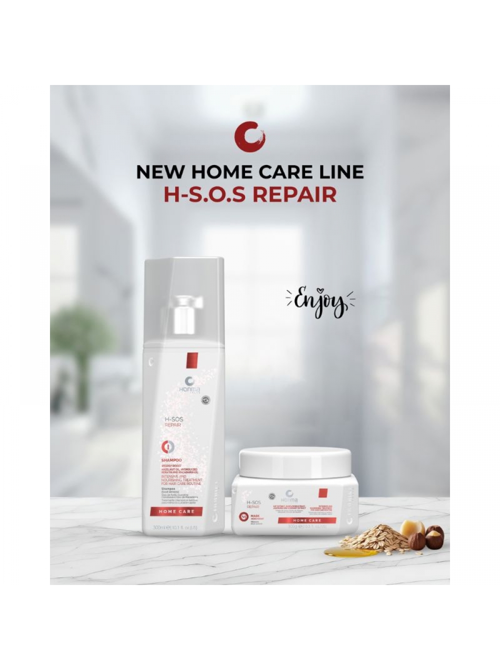 Відновлюючий набір Honma Tokyo H-SOS Repair шампунь і маска призначений для комплексного догляду за пошкодженим, сухим і ослабленим волоссям. Засоби м’яко очищають шкіру голови, відновлюють структуру волосся та компенсують втрату вологи після фарбування, хімічних процедур і термовпливу. Підходить для регулярного використання, зокрема для ламкого та тьмяного волосся.
