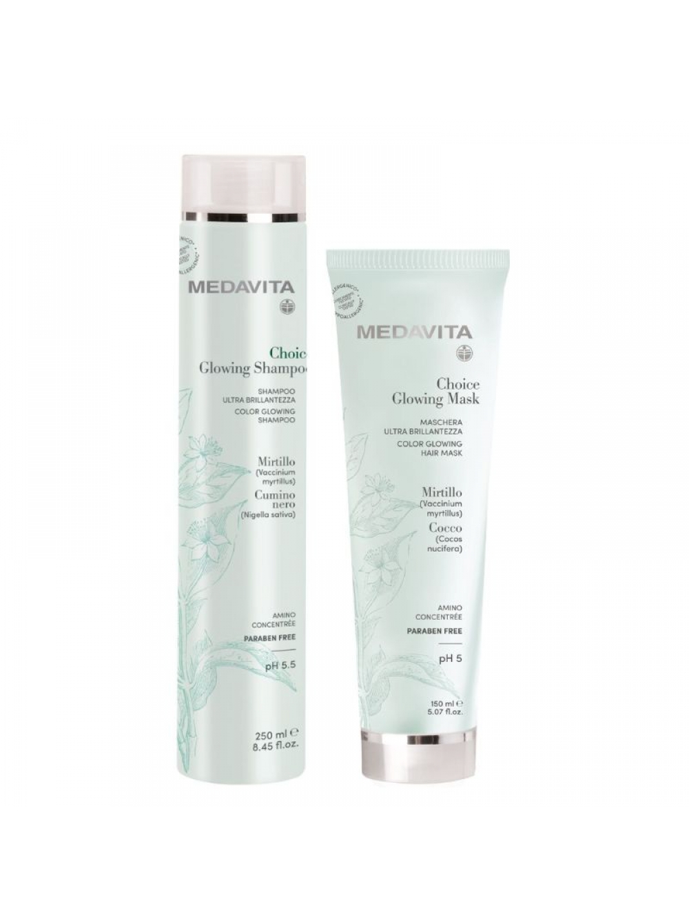 Набір Medavita Choice Glowing DUO шампунь і маска для зволоження і блиску фарбованого волосся 250/150 мл