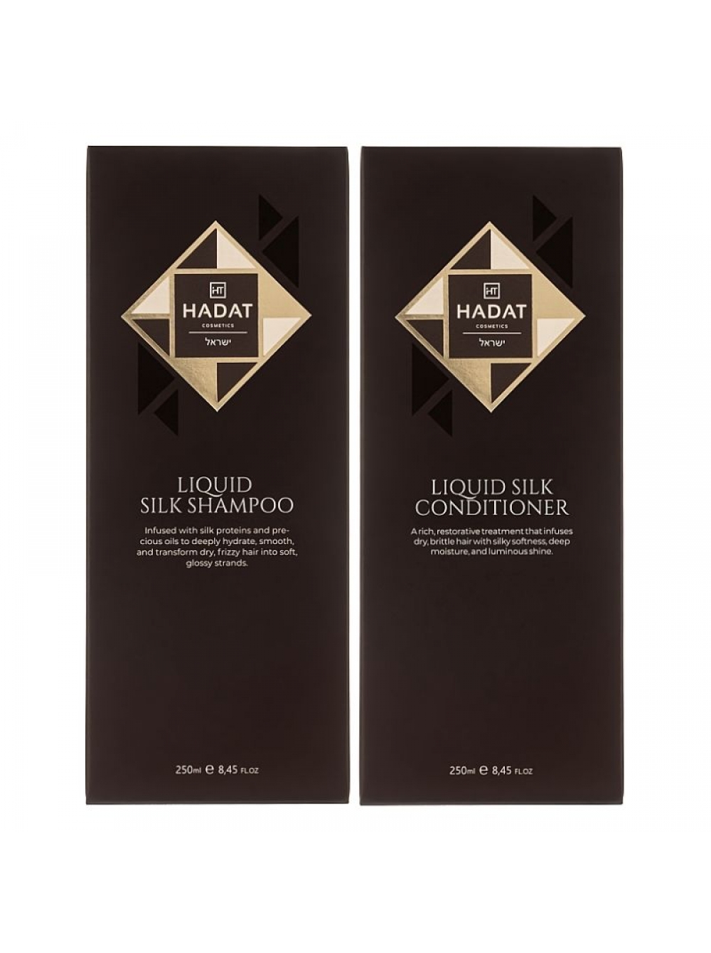 Набір "Рідкий Шовк" Hadat Liquid Silk DUO шампунь і кондиціонер для відновлення блиску та гладкості волосся 2х250 мл