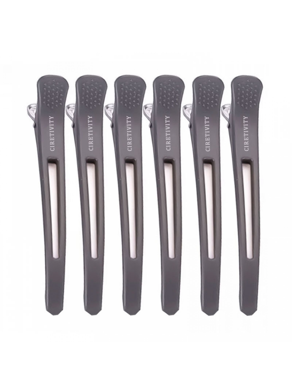 Перукарські кліпси-затискачі CIRETIVITY для волосся "Качка" пласкі, пластик/метал, 11 см, сірі