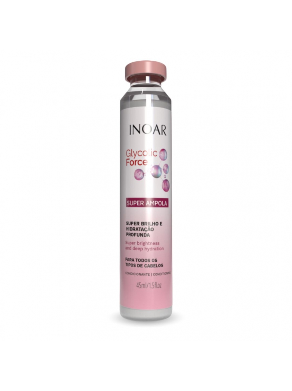 Ампула INOAR Glycolic Force предназначена для глубокого восстановления и укрепления ослабленных, повреждённых и ломких волос. Формула разработана для профессионального и домашнего применения, обеспечивая мгновенное восстановление структуры волос.