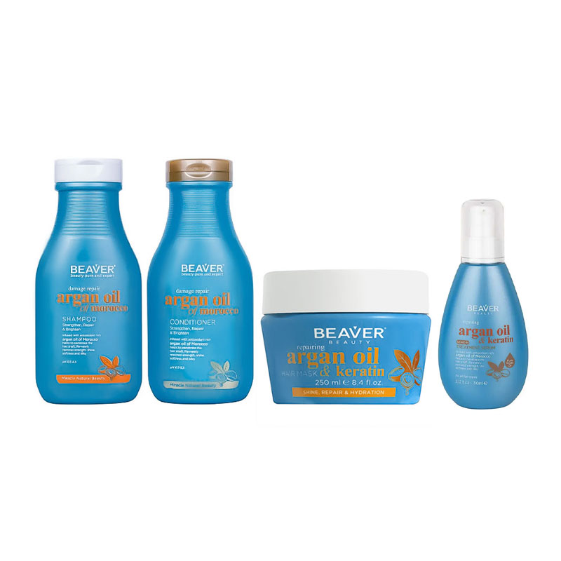 Восстанавливающий набор Beaver Argan Oil & Keratin для домашнего ухода 350+350+250+150 мл
