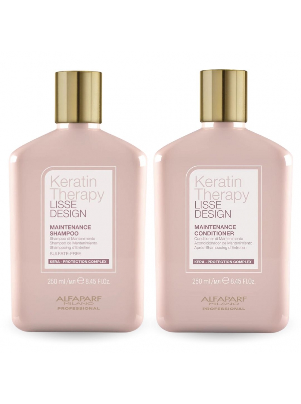 Набор Alfaparf Milano DUO Lisse Design Keratin Therapy шампунь и кондиционер для блеска и шелковистости волос, 2х250 мл