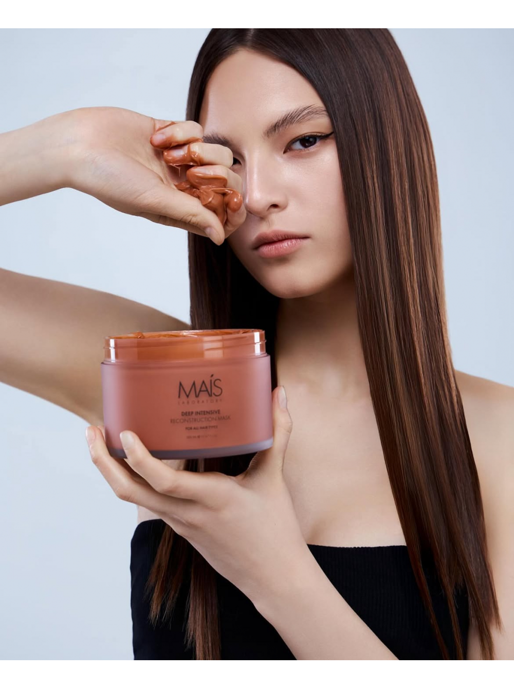 Маска Mais Instant Hair Recovery Mask — мгновенно восстанавливает и укрепляет волосы, делая их более плотными, блестящими и защищенными от ломкости.