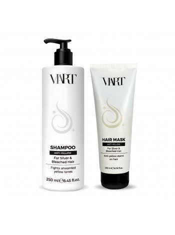 Набор VIART DUO Anti-Yellow разработан для комплексного ухода за светлыми, осветленными, мелированными и седыми волосами. В состав входят шампунь и маска, которые работают вместе для нейтрализации нежелательной желтизны и сохранения холодного оттенка.
