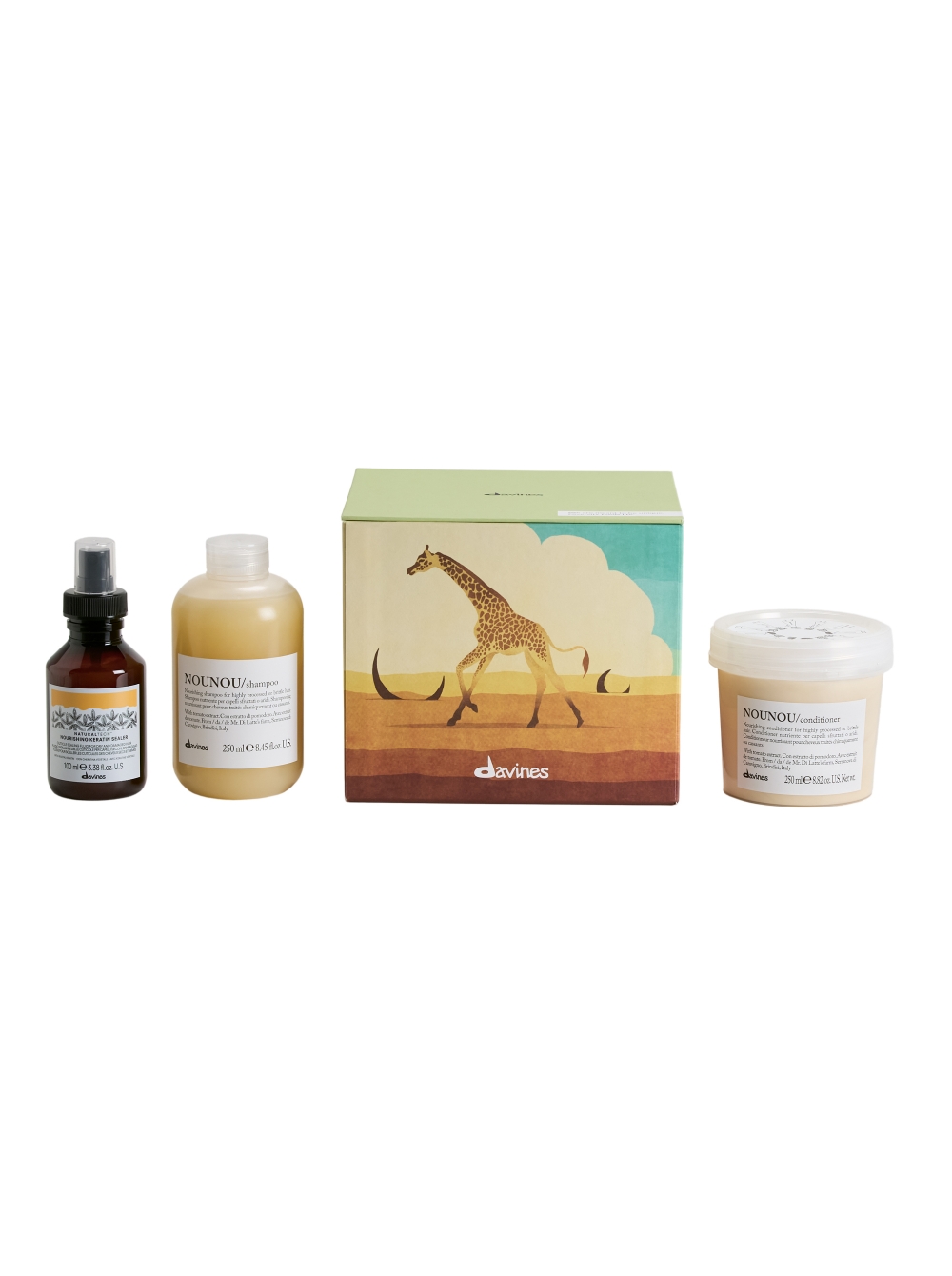 при регулярном использовании волосы становятся более плотными на ощупь, менее ломкими и легче поддаются укладке. NOUNOU Shampoo обеспечивает мягкое очищение, снижая ощущение сухости. NOUNOU Conditioner делает полотно более гибким и удобным в работе. Naturaltech Nourishing Keratin Sealer формирует защитную пленку, улучшает визуальную гладкость и снижает повреждаемость при укладке. Совместное применение набора Davines NOUNOU Box способствует накоплению ухаживающего эффекта и поддержанию стабильной структуры длины.