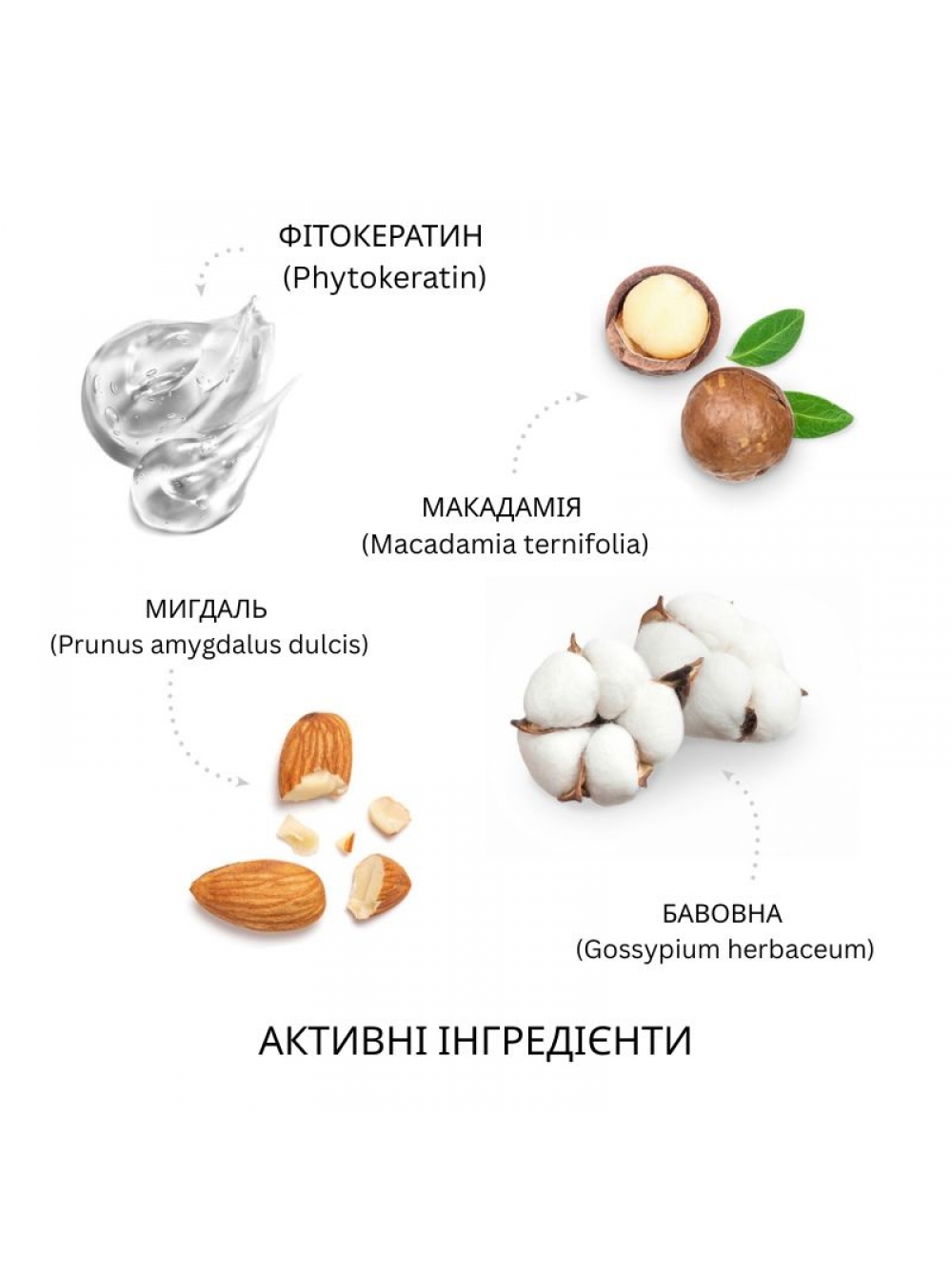 Гидролизованный кератин, масло моринги, аминокислоты, пантенол.