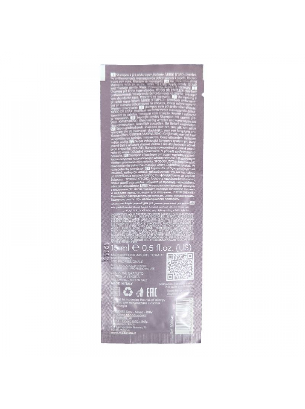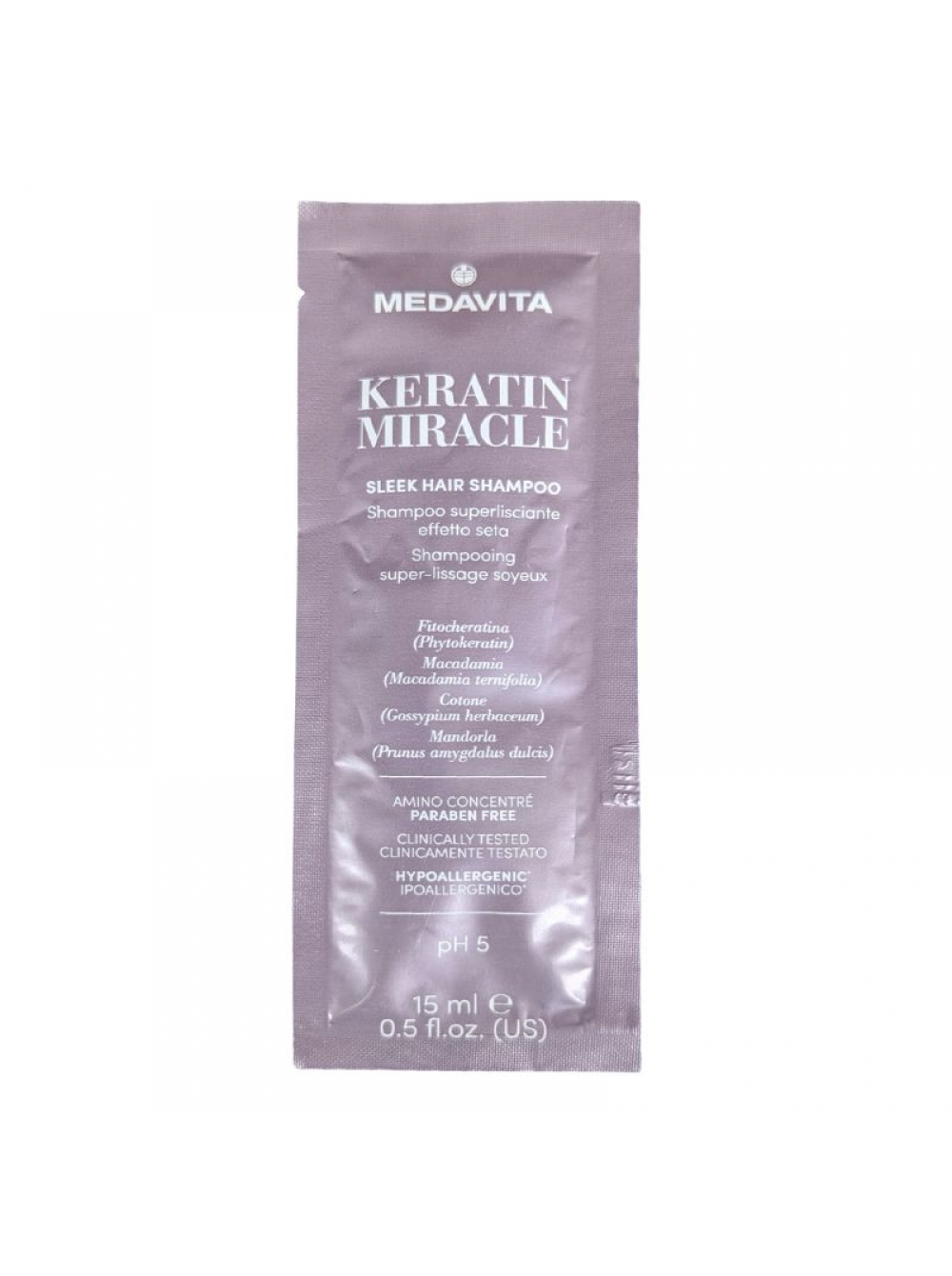 Разглаживающий шампунь Medavita Keratin Miracle Sleek Shampoo с эффектом шелка для пушистых и непослушных волос, пробник саше 15 мл