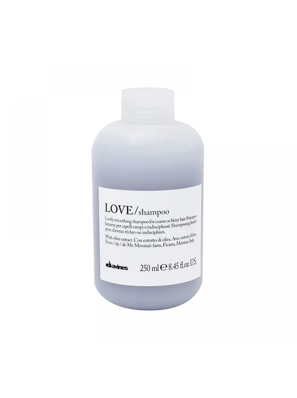 Розгладжуючий шампунь Love Lovely Smoothing Shampoo від Davines (країна-виробник – Італія) дбайливо очищає та сприяє розгладжуванню хвилястих локонів. Формула продукту містить екстракт оливи, вiтaмiни та мінерали, що забезпечують довготривале зволоження волосяної структури.