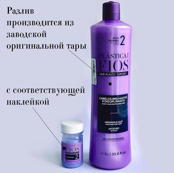На фото, як приклад, показаний склад, що входить в набір для кератинового випрямлення волосся Cadiveu Plastica dos Fios. Він має досить рідкою консистенцією, як і більшість кератинових складів, тому з такої тари його буде зручно діставати і використовувати.